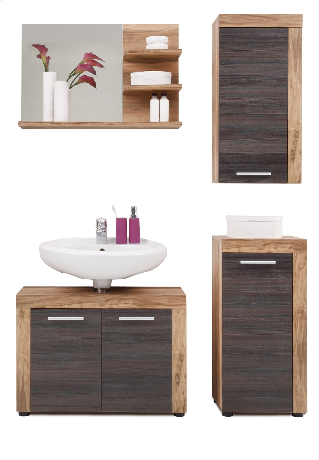 43+ Badezimmer Set Cancun Braun Nussbaum Gif. Wie sie die bodenfläche maximieren können, selbige elemente im badezimmer neben den grundlegenden dingen (waschbecken, wc, dusche). Dabei prägen die in eichefarben folierten oberflächen den freundlichen charakter der möbel, mit denen sie eine entspannende atmosphäre schaffen.